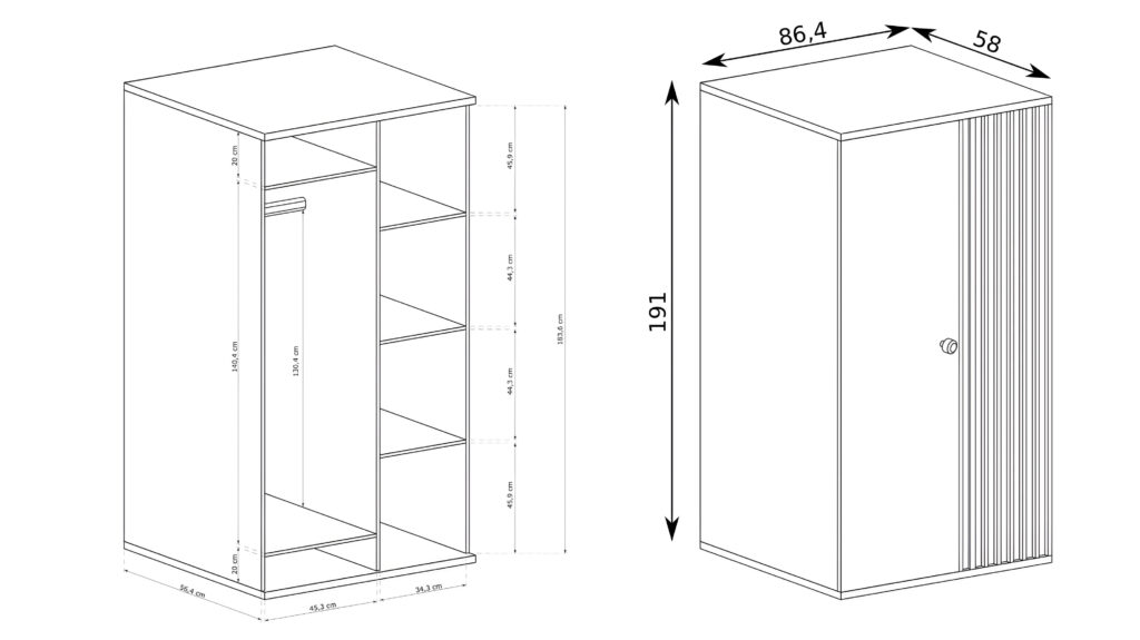 Au-delà de son allure élégante, l’armoire ZEBRA est conçue avec une attention particulière à la fonctionnalité. L’intérieur spacieux est équipé d’une tringle robuste, permettant de suspendre aisément des vêtements tels que des chemises, des costumes et des robes, évitant ainsi les plis et contribuant à une meilleure organisation de votre garde-robe. Les étagères supplémentaires offrent un espace idéal pour les articles pliés, les accessoires ou le linge de maison, optimisant l’utilisation de l’espace de rangement.