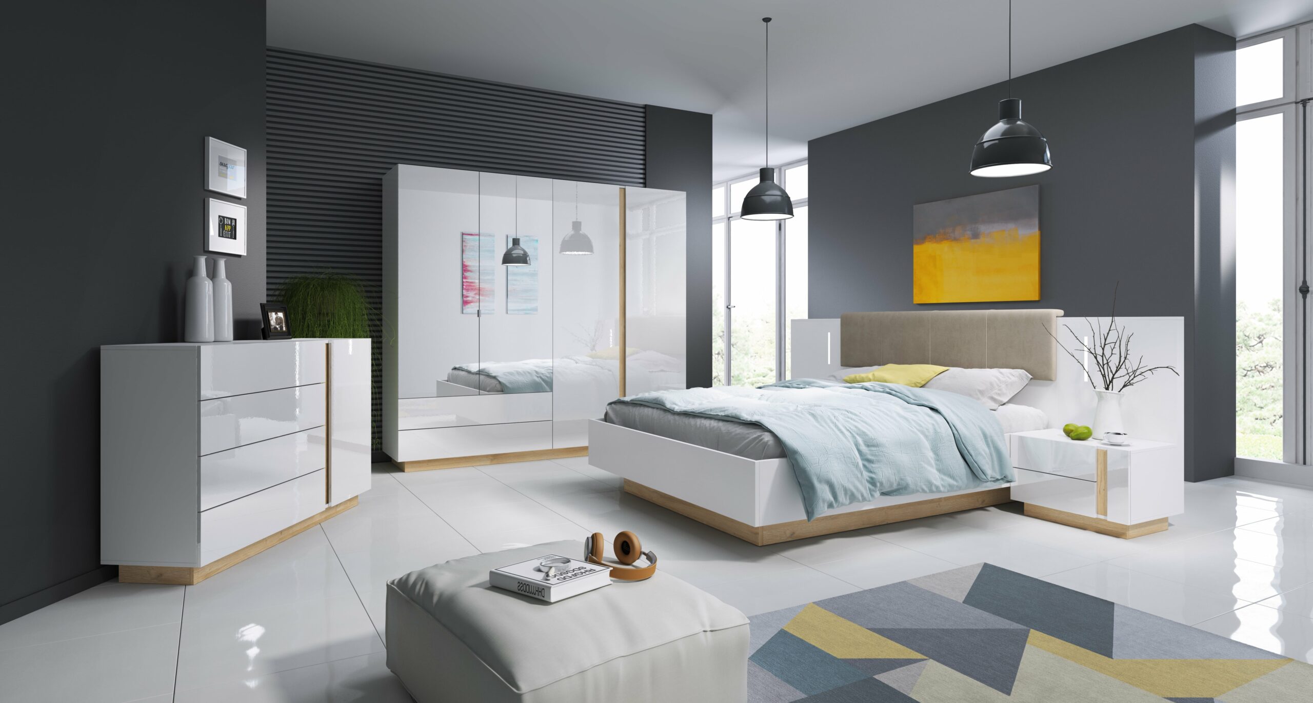Chambre complète avec Lit coffre 160cm Chevets Commode et grande Armoire – BRYCE
