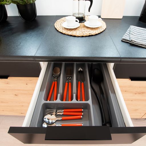 Profitez au maximum de l’espace disponible grâce à la conception intelligente de la cuisine EMILYA, offrant des solutions de rangement pratiques.