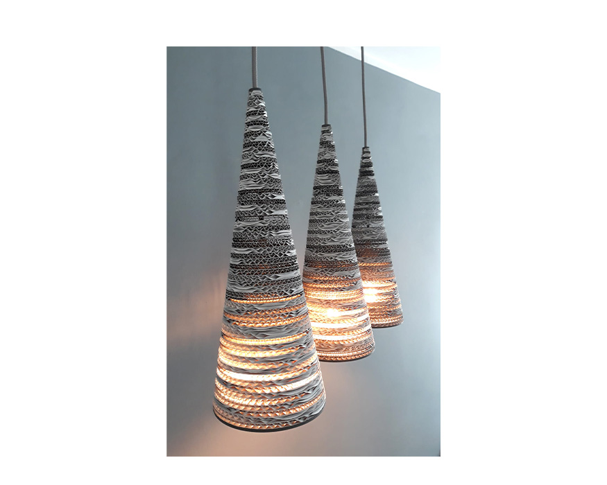 - Matériaux : Carton ondulé recyclé, contreplaqué de bouleau