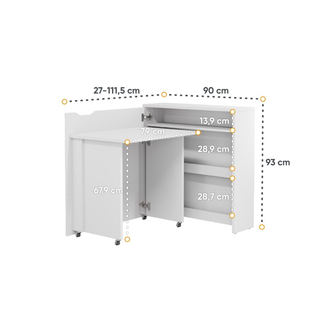 - Profondeur meuble : 27 cm (111 cm ouvert)