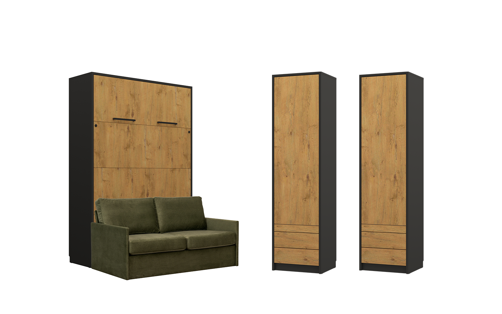 Armoire avec lit et canapé gris anthracite et rangements assortis – LOLITA