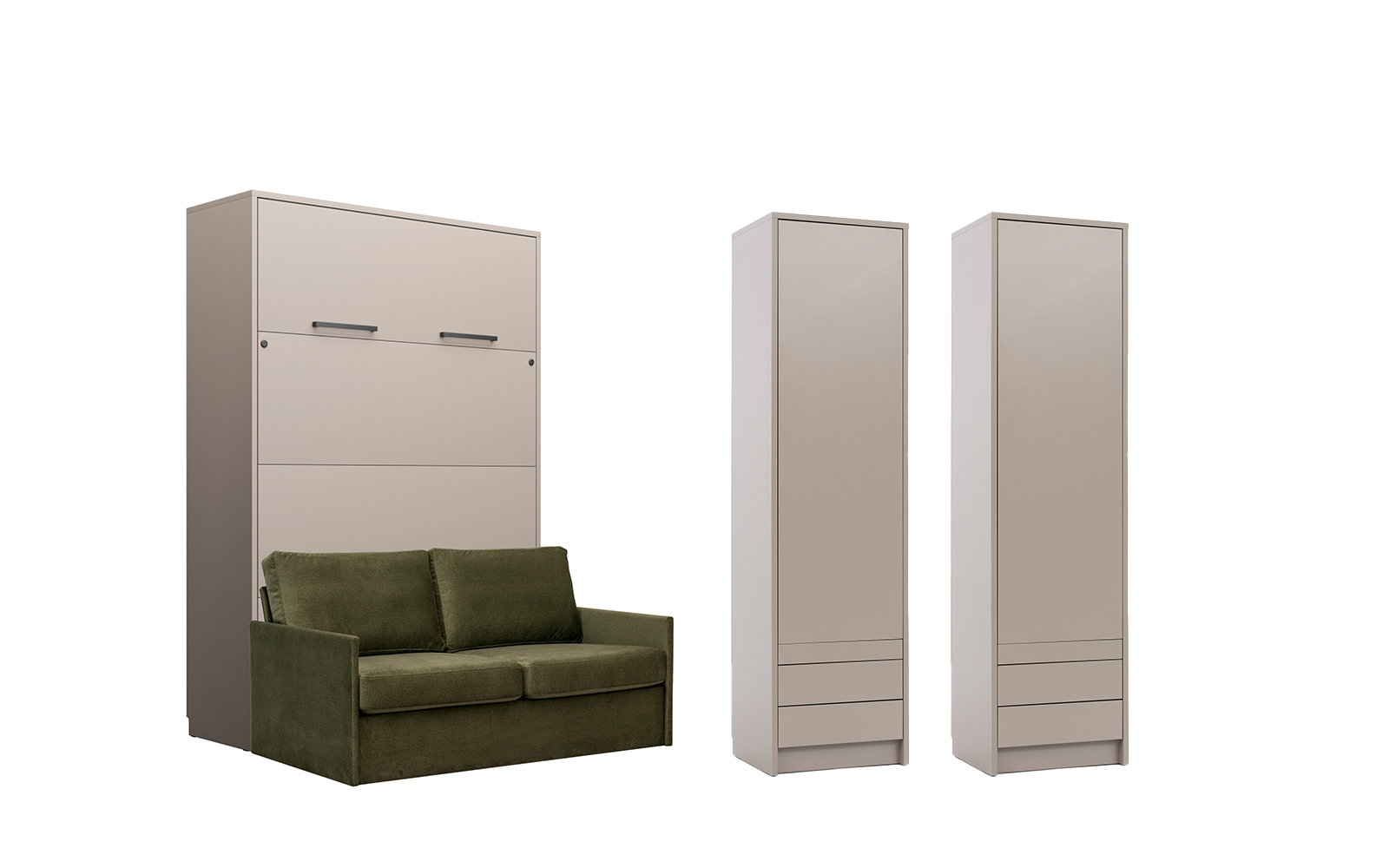 Lit escamotable et rangements assortis avec canapé beige – LOLITA