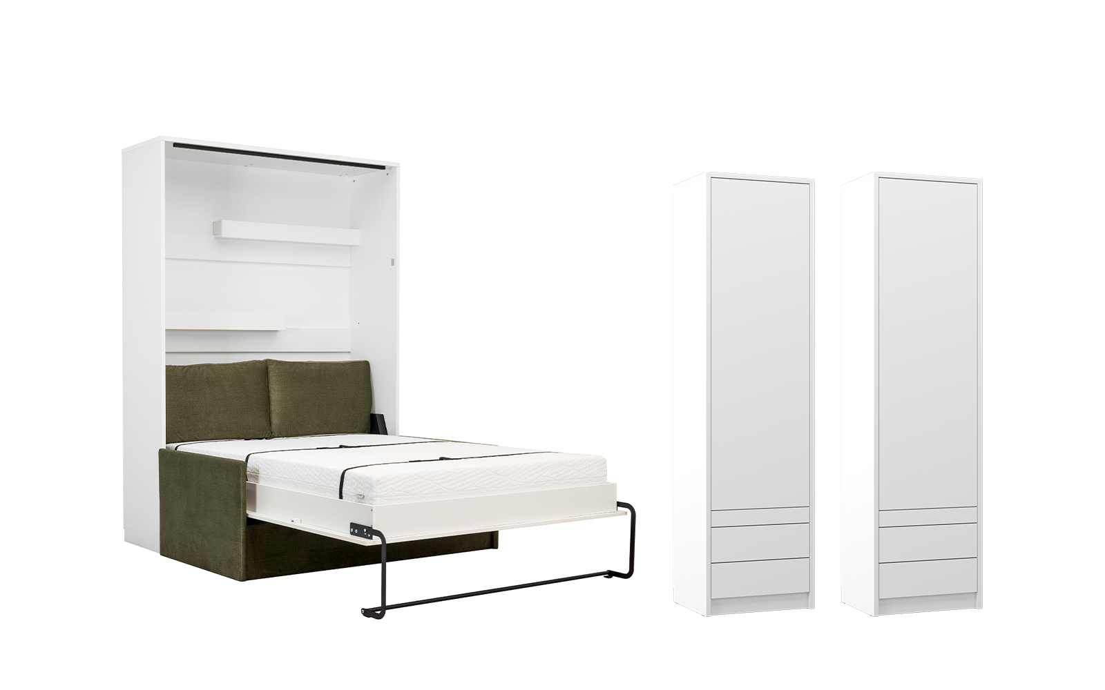 Armoire lit canapé vert et rangements assortis – LOLITA