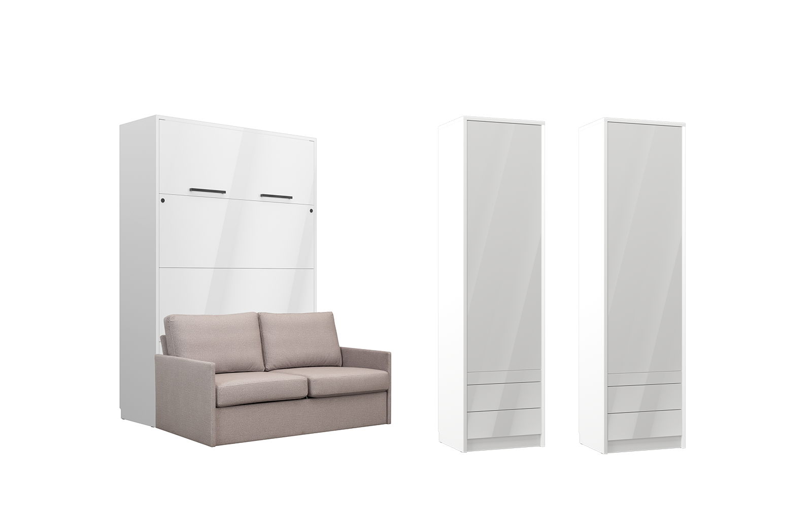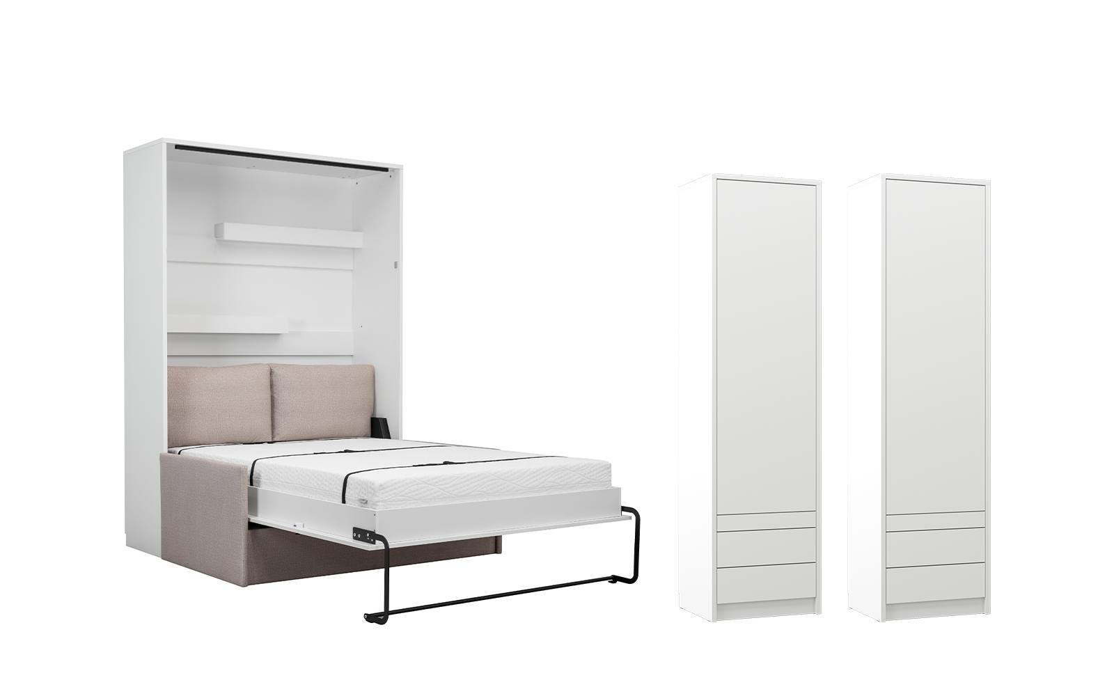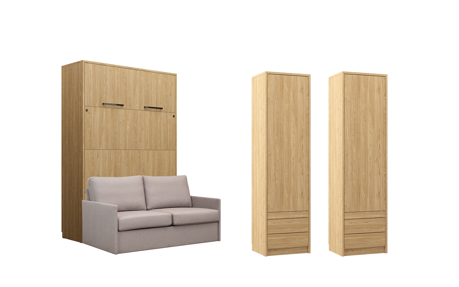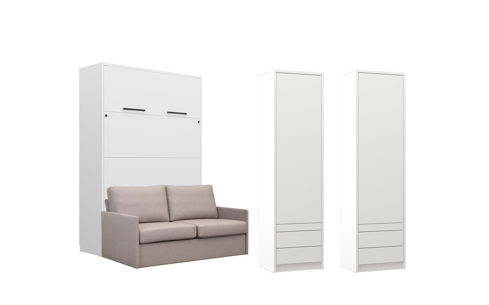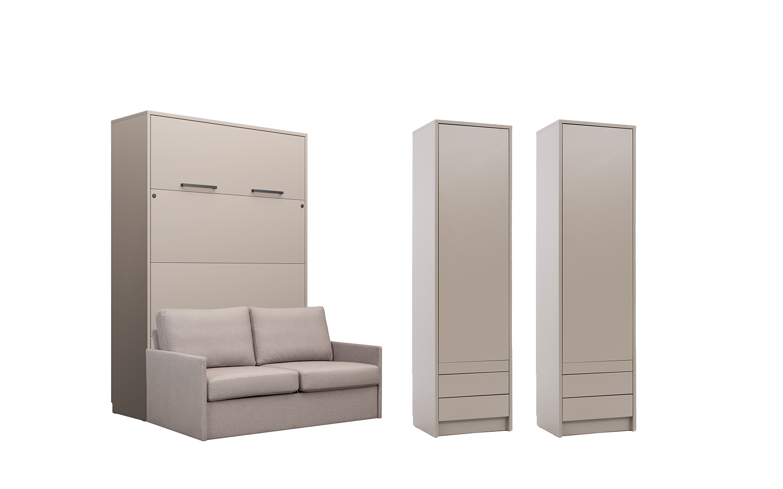 Lit escamotable et rangements assortis avec canapé beige – LOLITA
