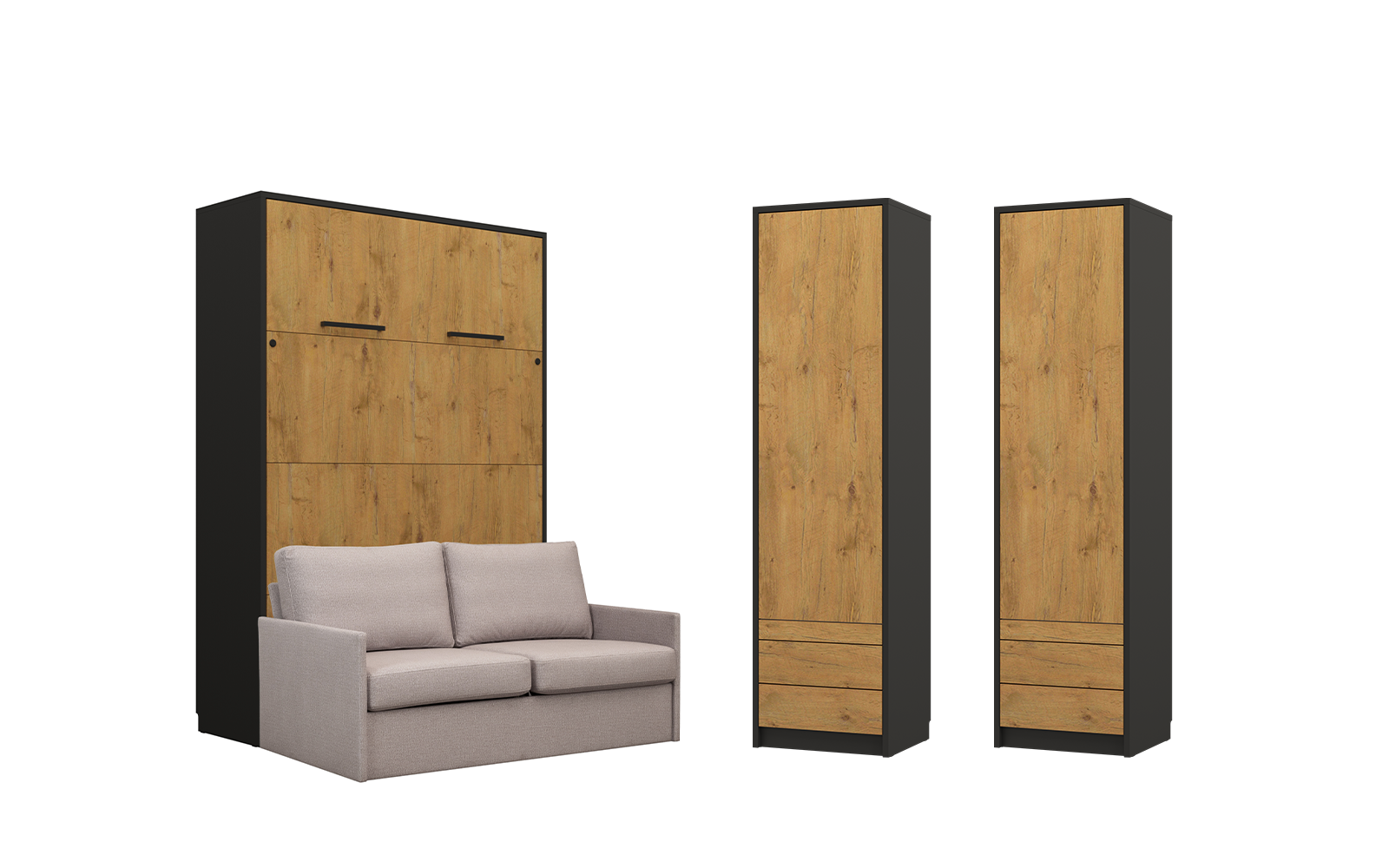 Armoire avec lit et canapé gris anthracite et rangements assortis – LOLITA