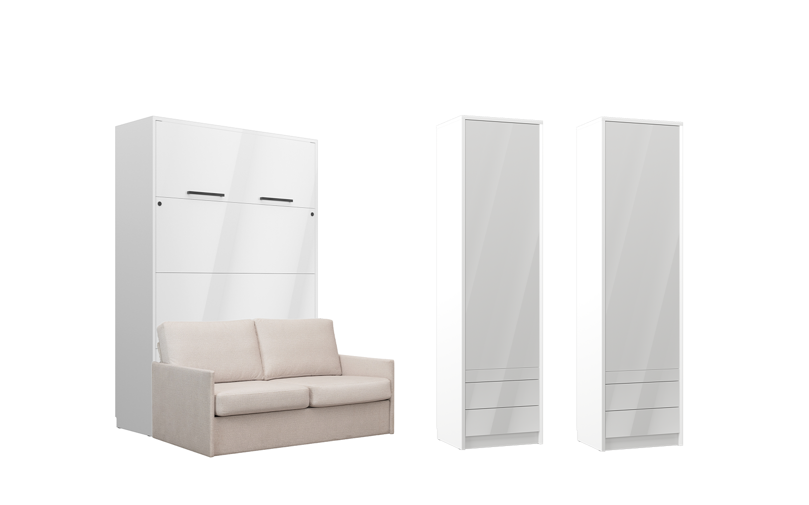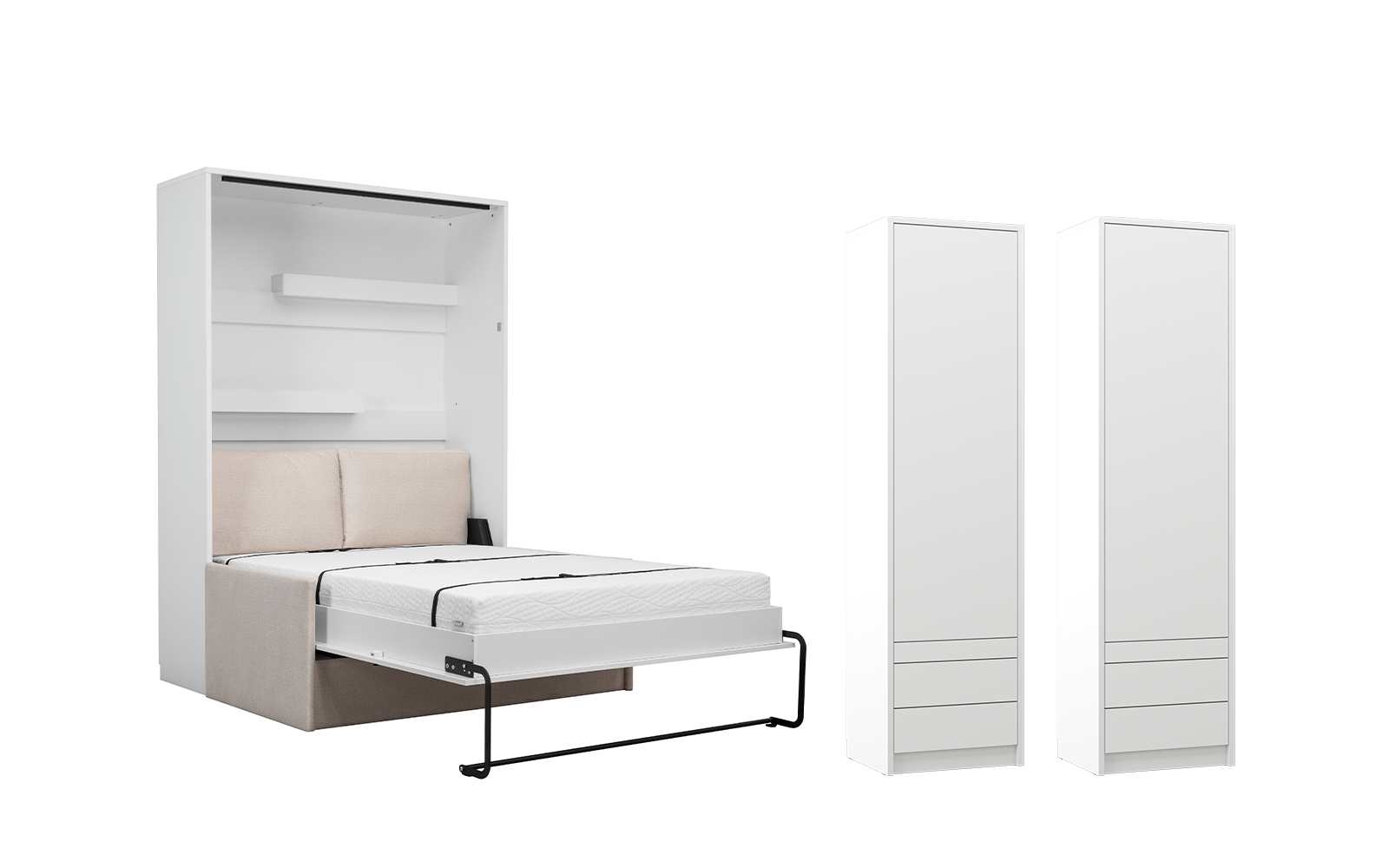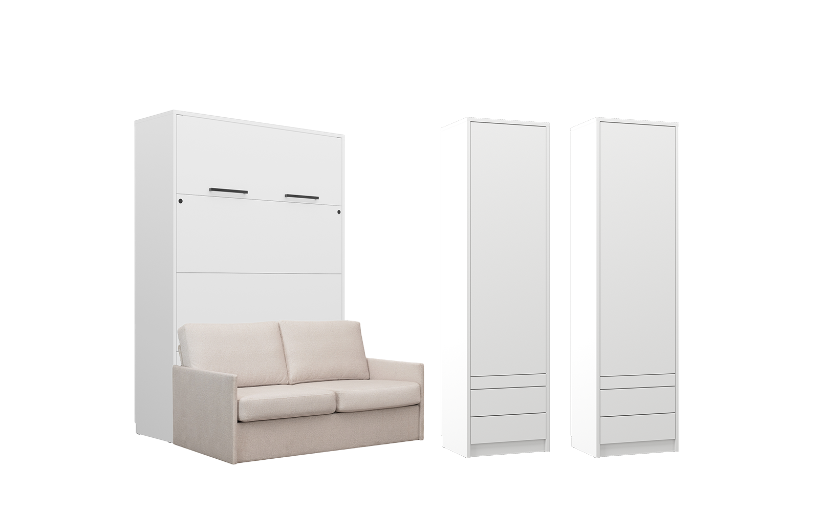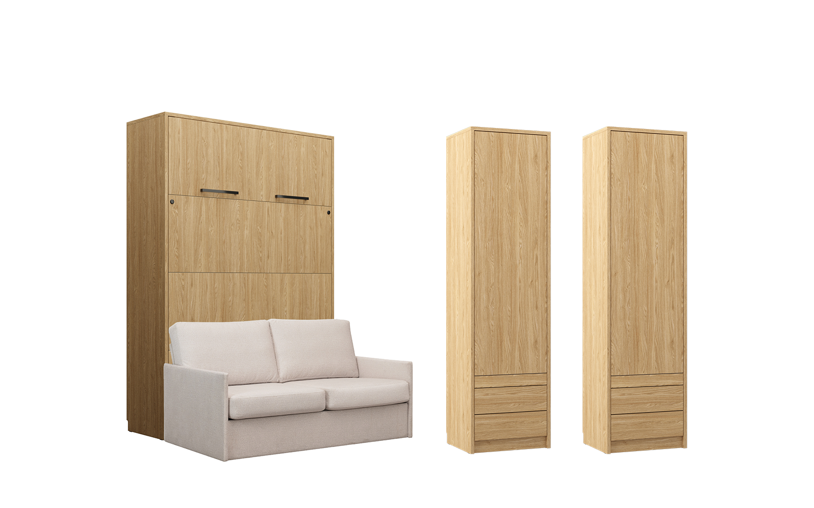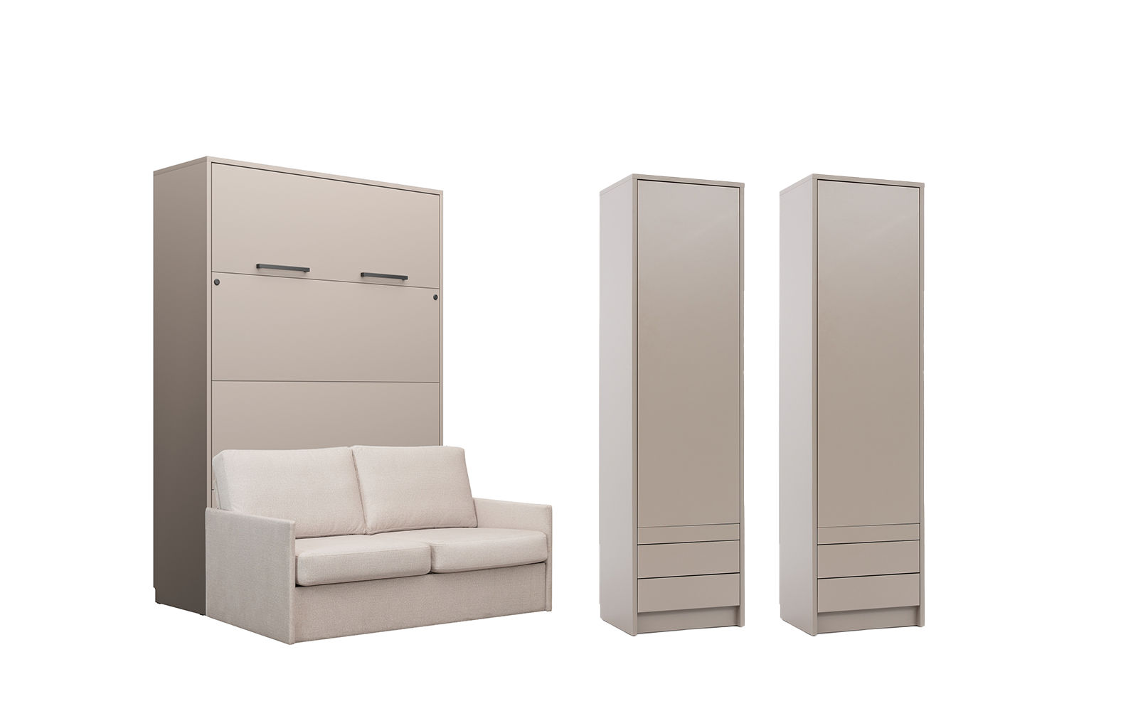 Lit escamotable et rangements assortis avec canapé beige – LOLITA