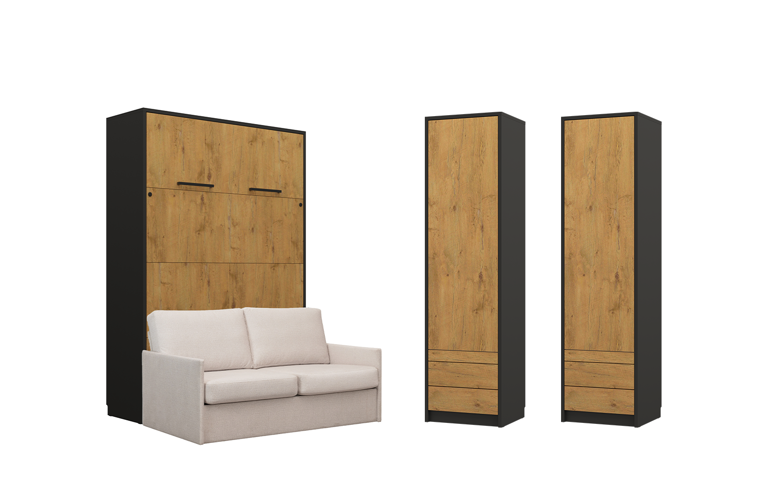 Armoire avec lit et canapé gris anthracite et rangements assortis – LOLITA
