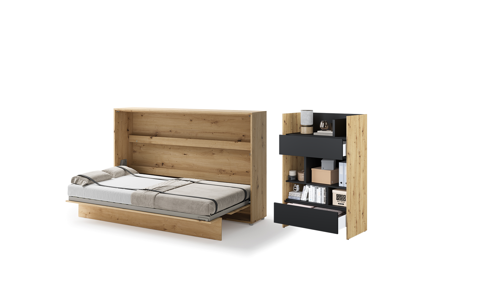 Cet ensemble, composé du lit escamotable horizontal 120×200 SMART et de son rangement assorti, est la solution idéale pour allier confort, praticité et design dans les petits espaces.