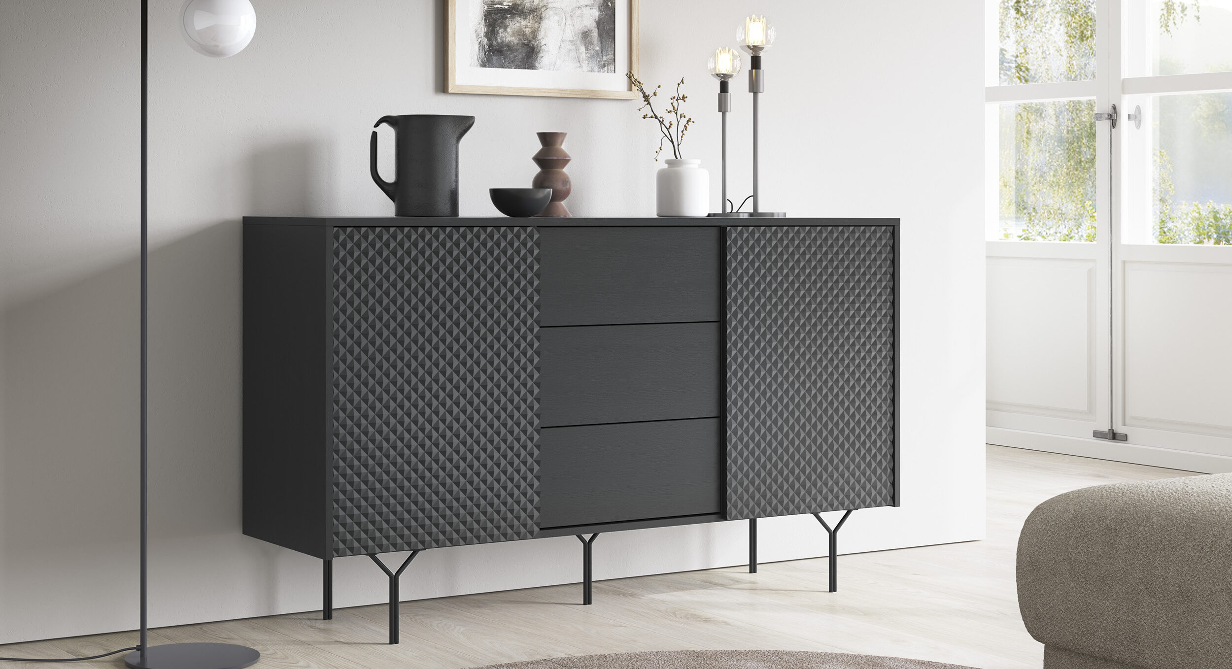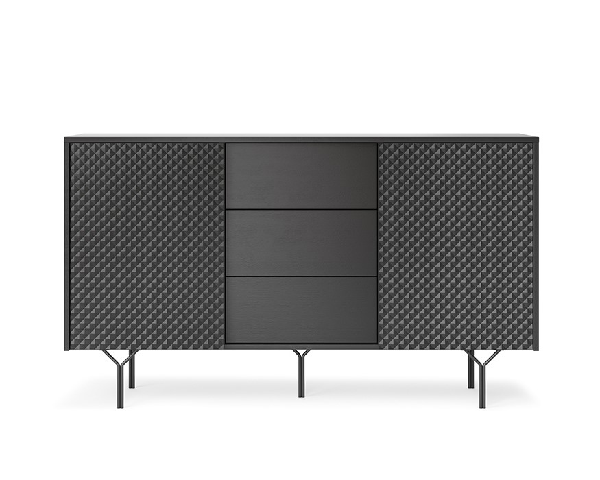 KAMAZZA Buffet LENA 144 cm 2 portes 3 tiroirs – Noir