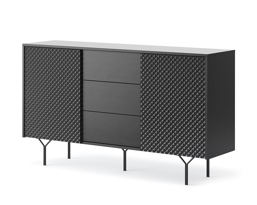 Buffet 2 portes 3 tiroirs Noir pieds métal 145cm – LENA
