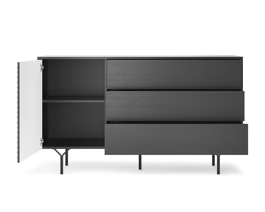 Buffet 3 tiroirs 1 porte pieds métal Noir 145 cm – LENA
