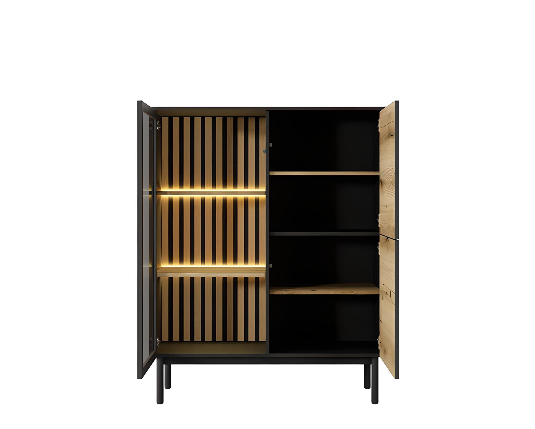 Buffet haut 3 portes 7 étagères LEDs intégré Chêne et Noir 100 cm – CAMILLE