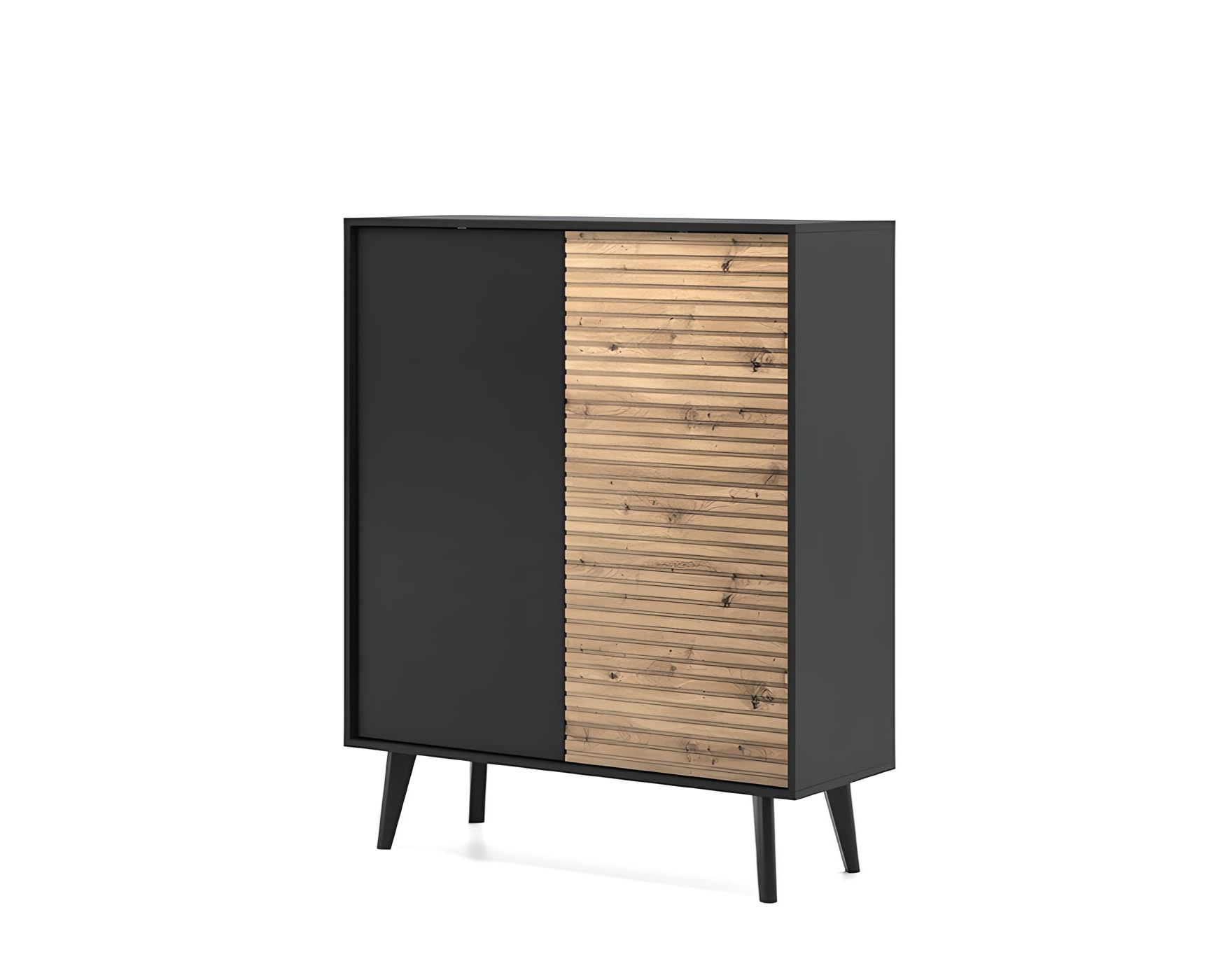 Buffet Haut 2 portes Noir et Chêne 100 cm – ISAAC