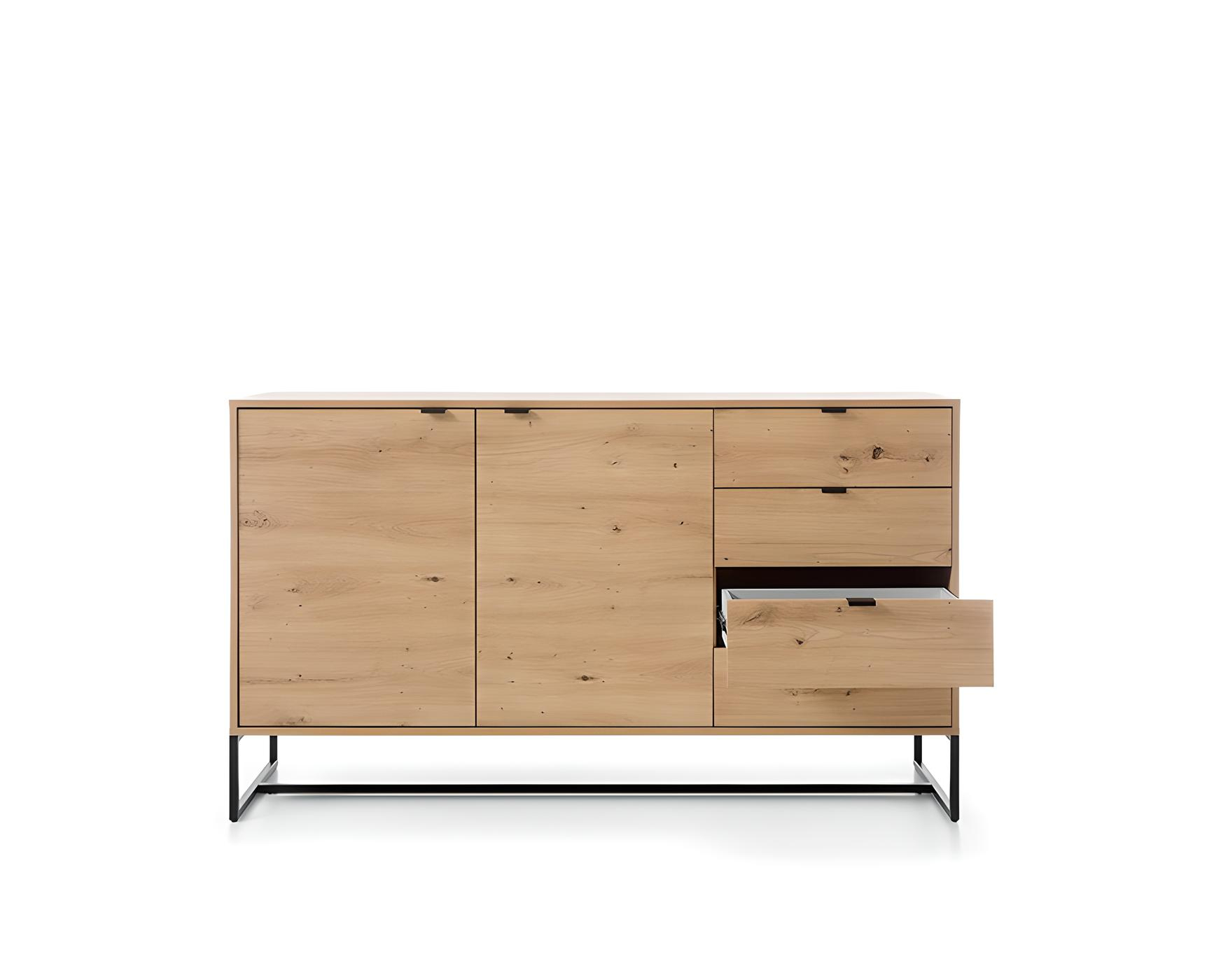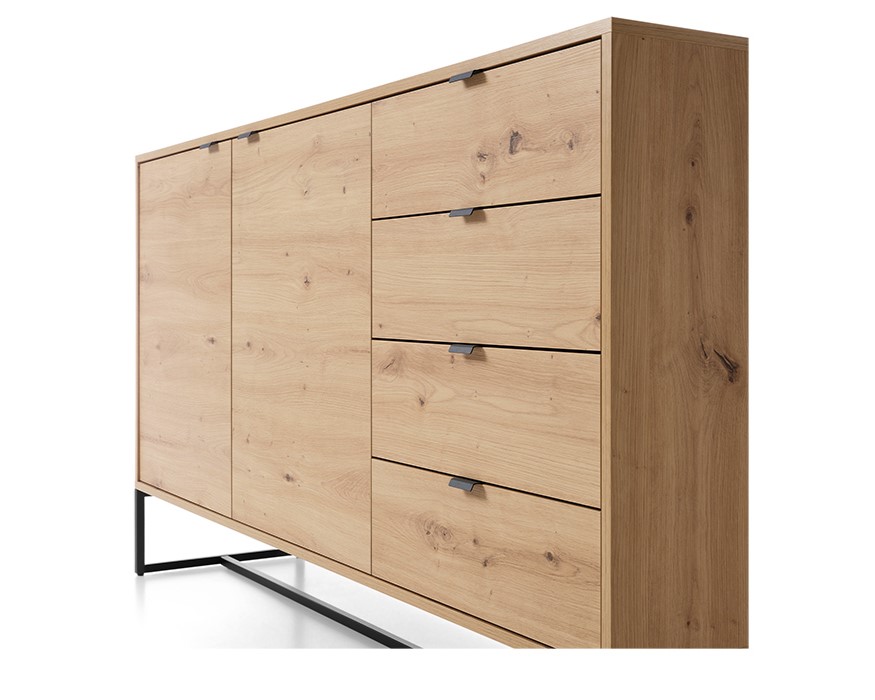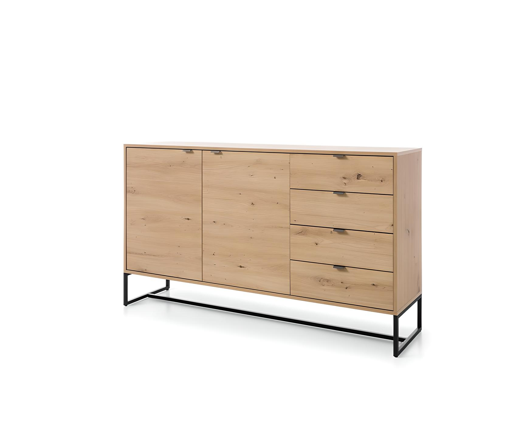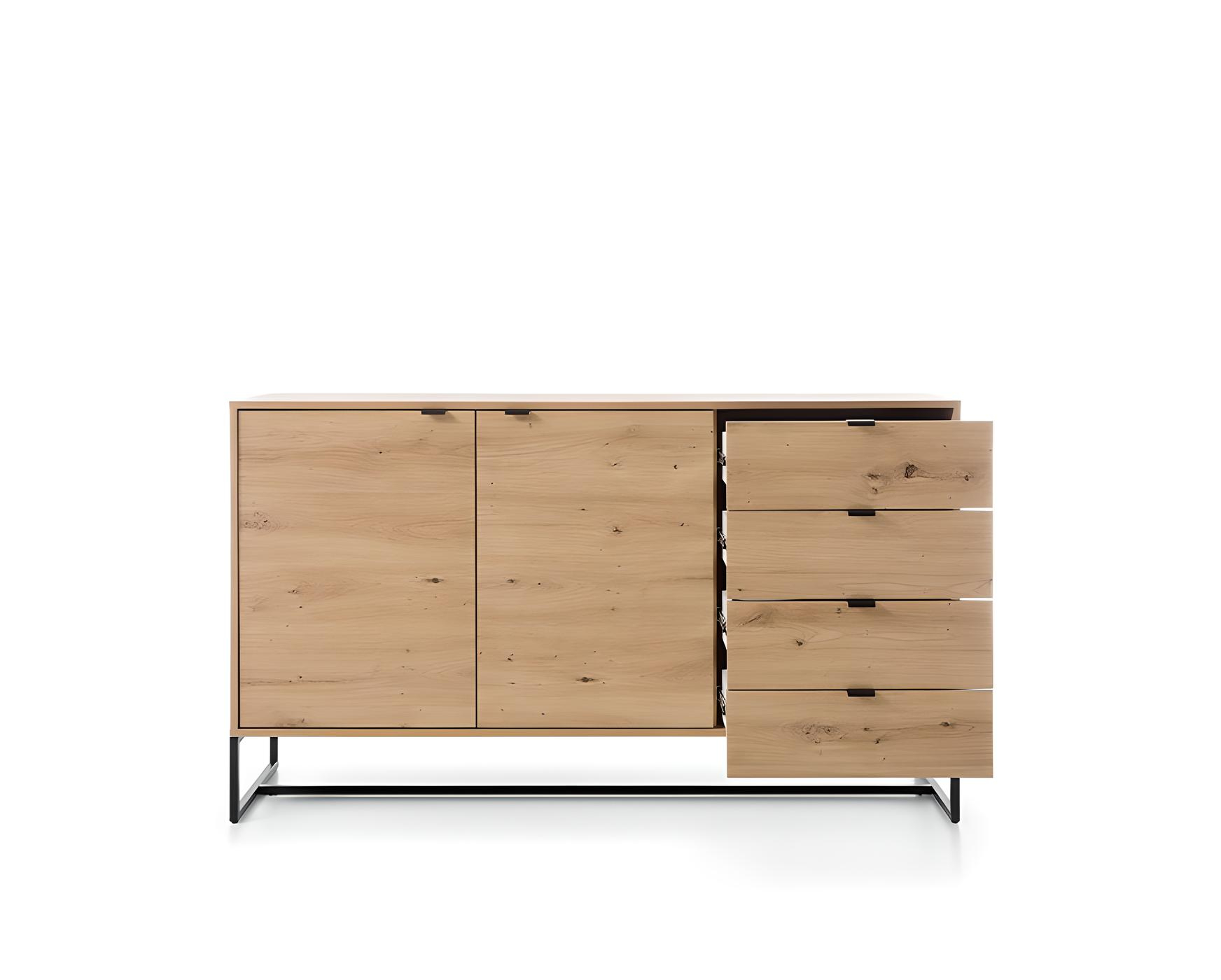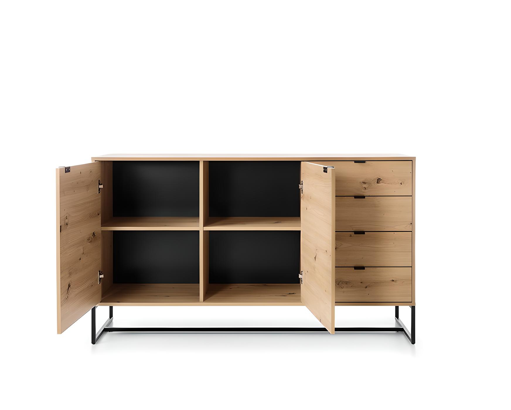Buffet 2 portes 4 tiroirs Chêne et Noir 153 cm – CELINE