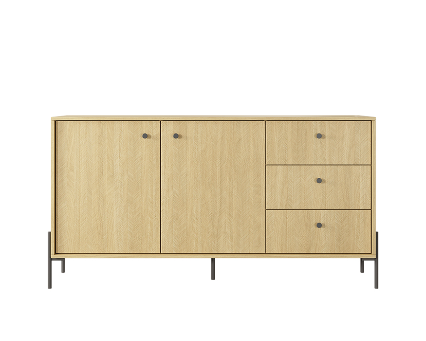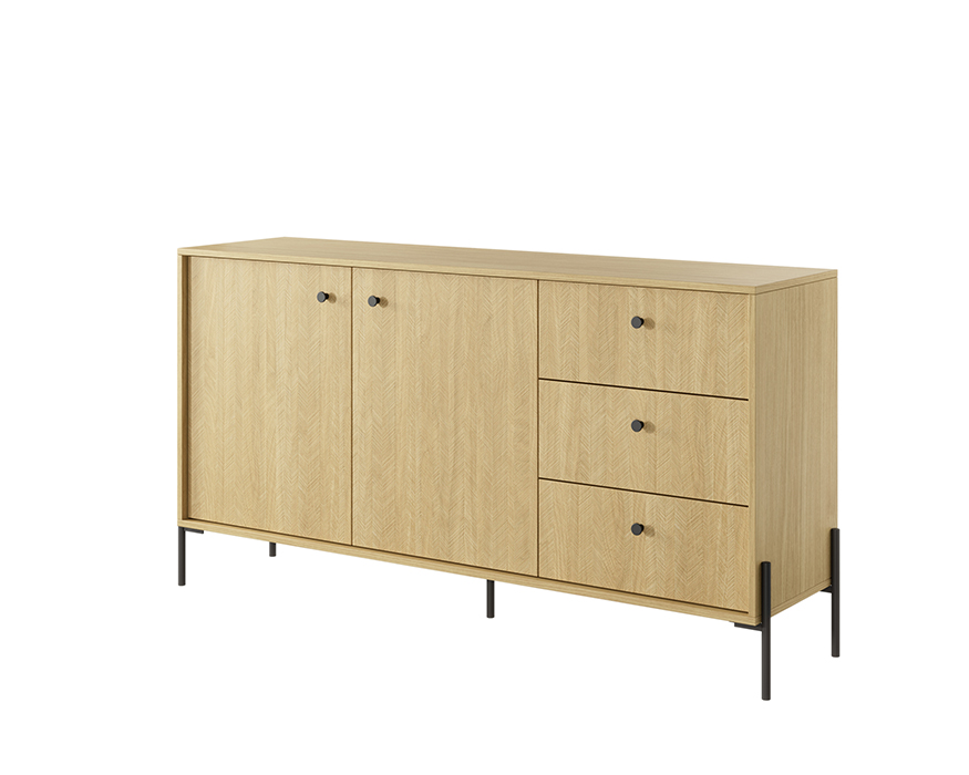 KAMAZZA Buffet bas NAVDI 157 cm 3 tiroirs et 2 portes – Chêne