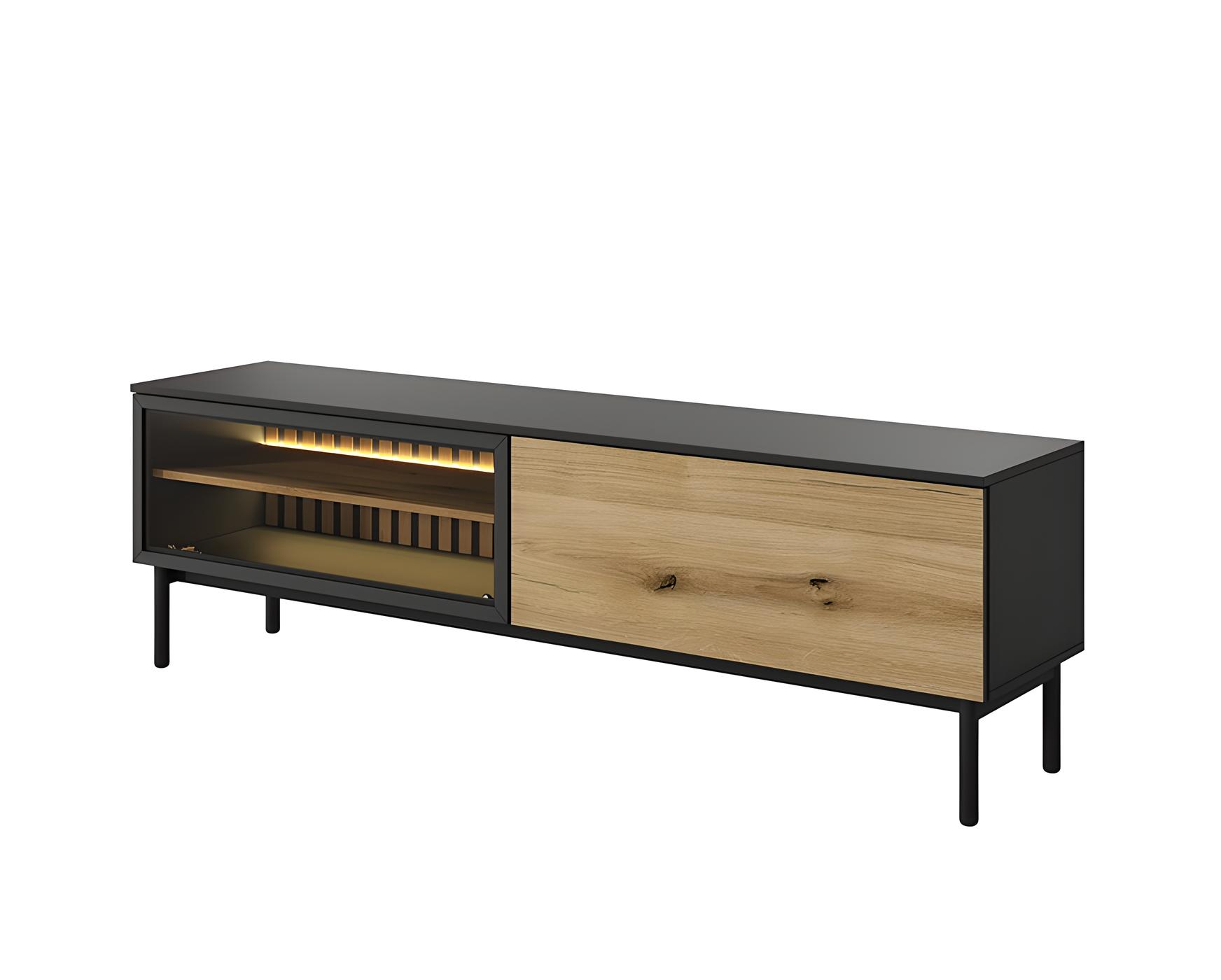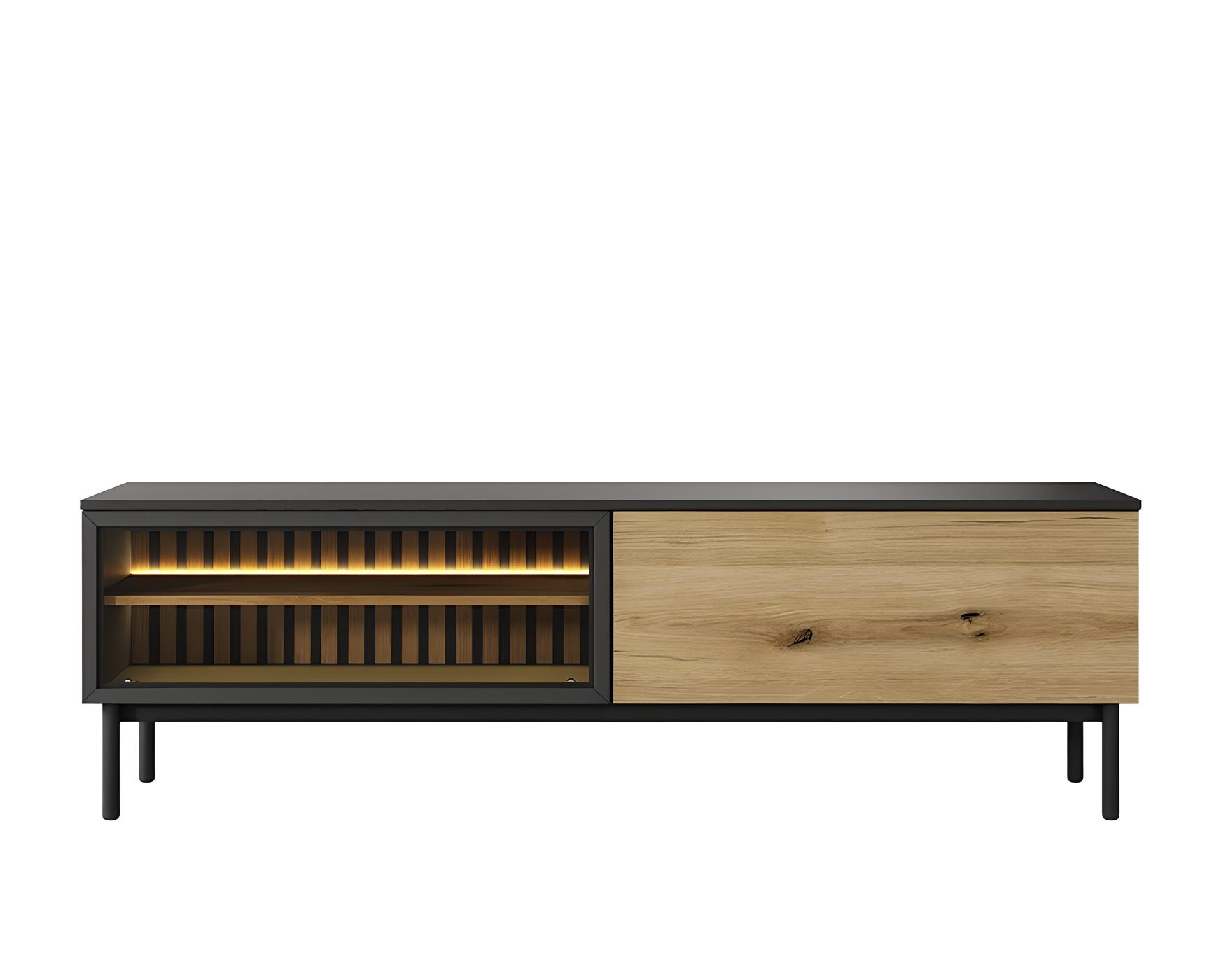 Meuble télé 2 portes LEDS intégré Chêne et Noir 180 cm – CAMILLE