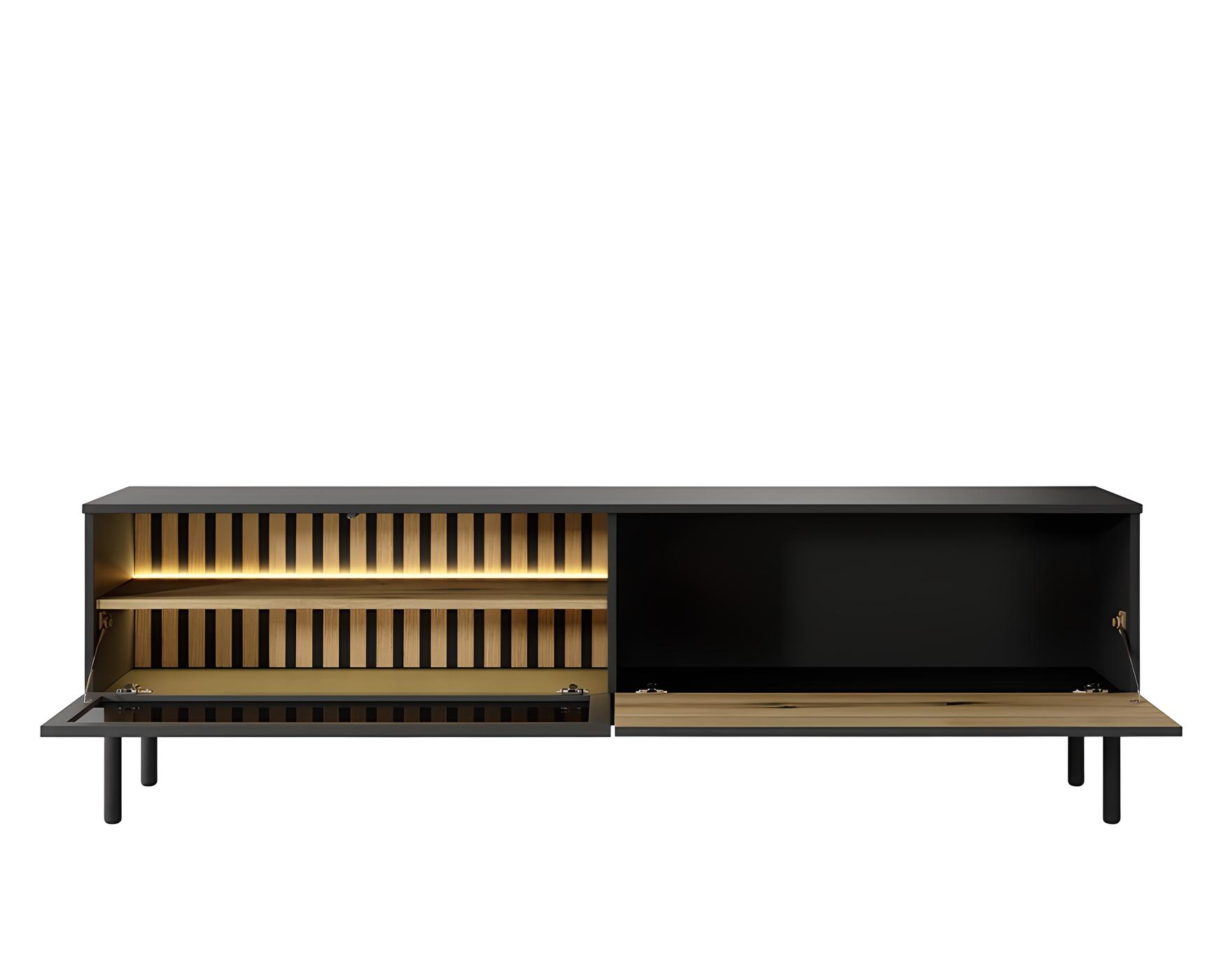 KAMAZZA Meuble télé 2 portes LEDS intégré Chêne et Noir 180 cm – CAMILLE