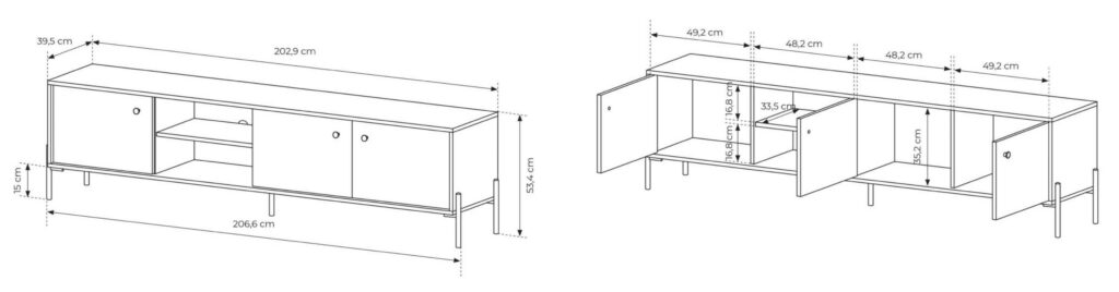 Le grand meuble télé NAVDI, mesurant 207 cm, allie fonctionnalité et style Japandi. Doté de trois portes et d’une double niche ouverte au centre, ce meuble offre un rangement spacieux pour vos équipements multimédias. La finition mélaminée aspect bois clair apporte une touche naturelle, tandis que les pieds et poignées métalliques noirs ajoutent une note contemporaine.