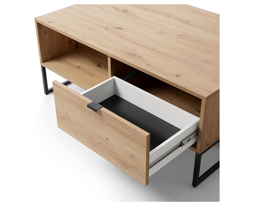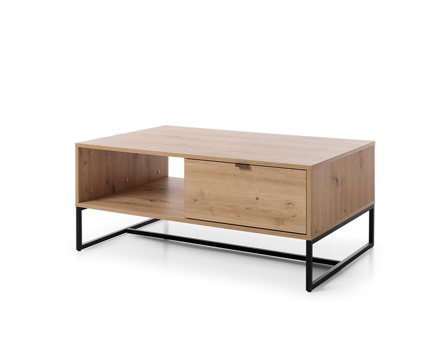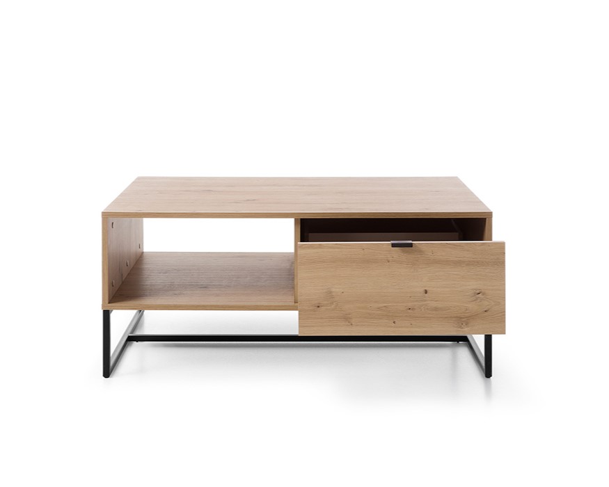 Table Basse 1 tiroir Chêne pieds métal noir – CELINE