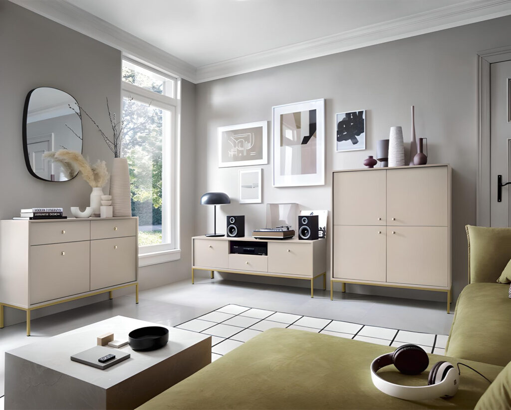 - Design Moderne : Les pieds et les poignées en métal ajoutent une dimension moderne à son design, parfait pour un salon contemporain.