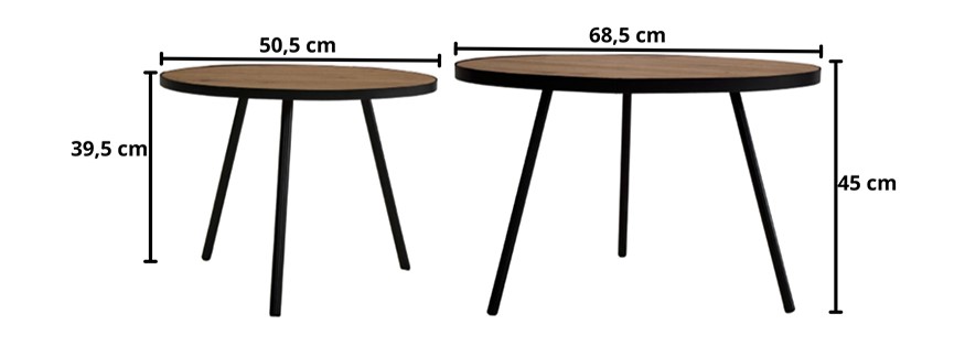 - Type de produit : Ensemble de 2 Tables Gigognes Rondes