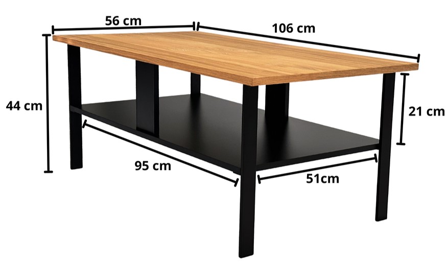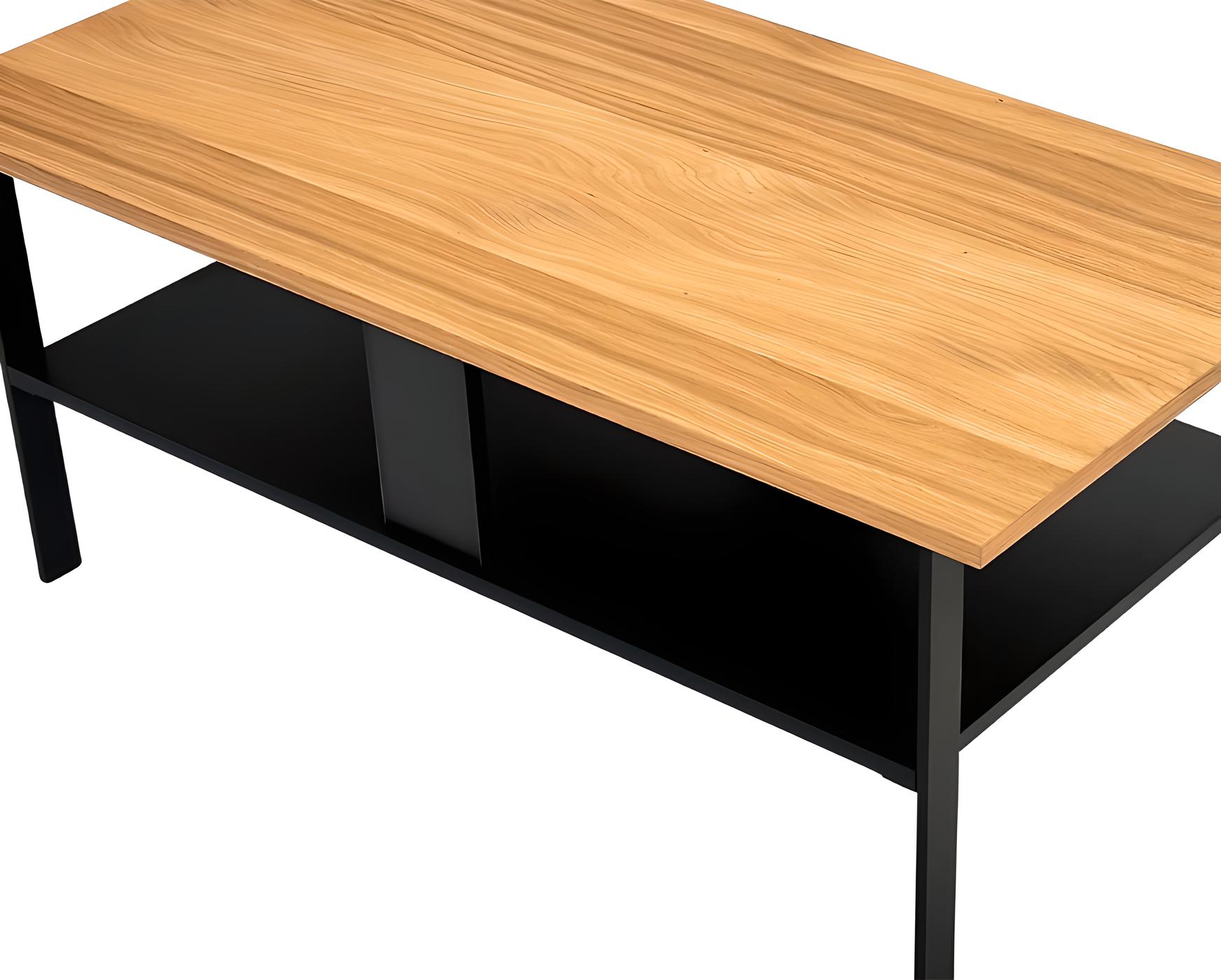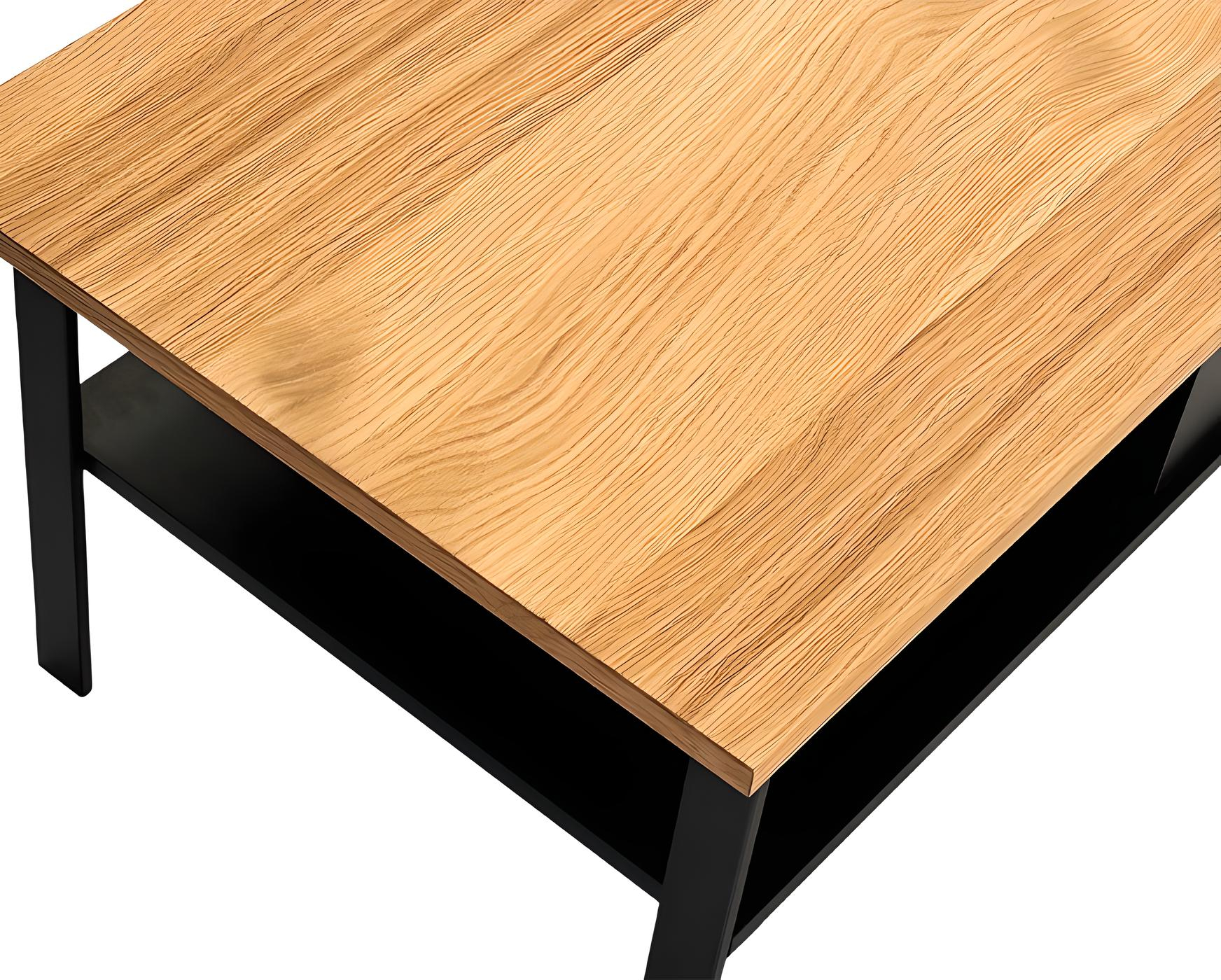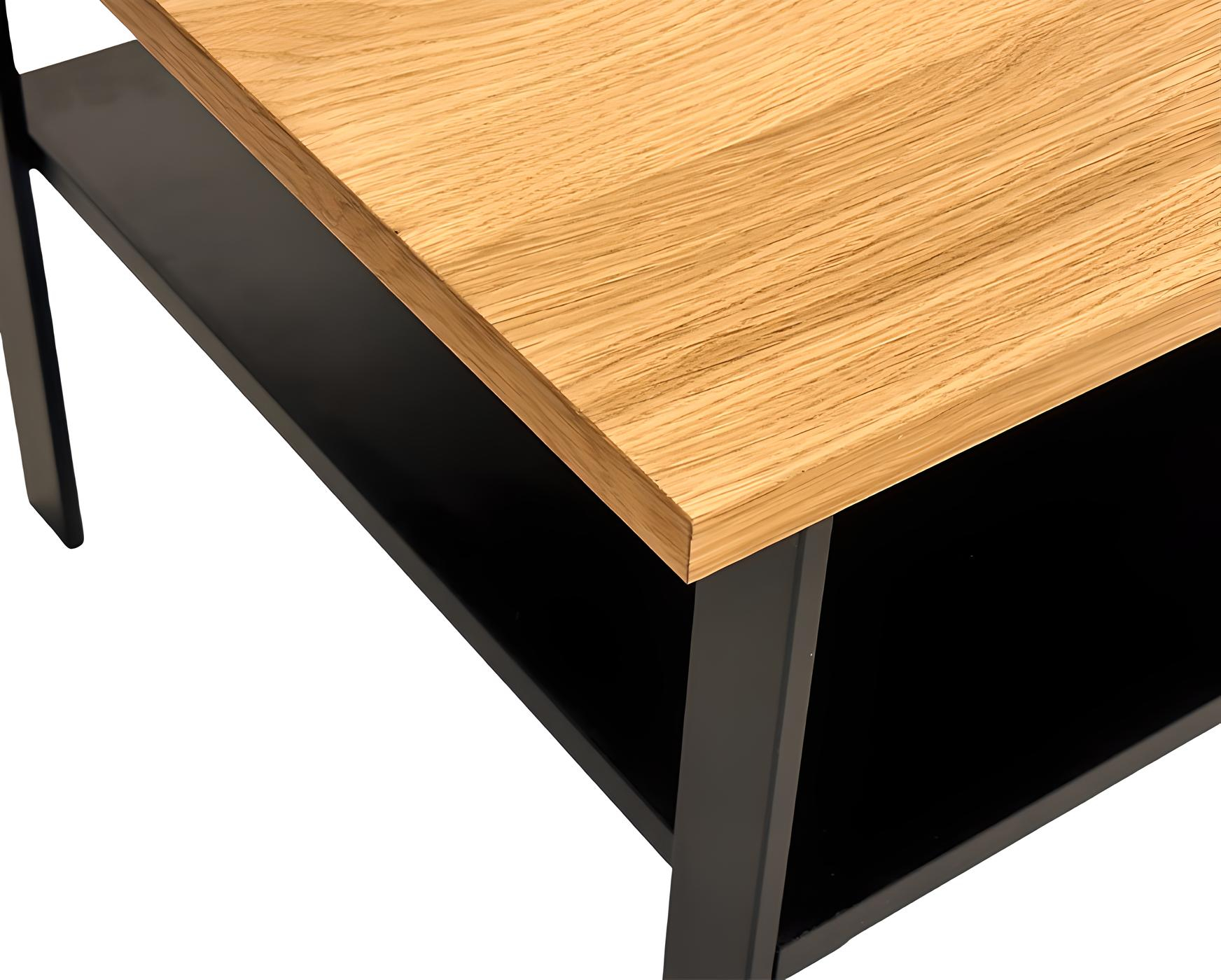 Table basse en chêne naturel et métal noir 106 cm – ALMA