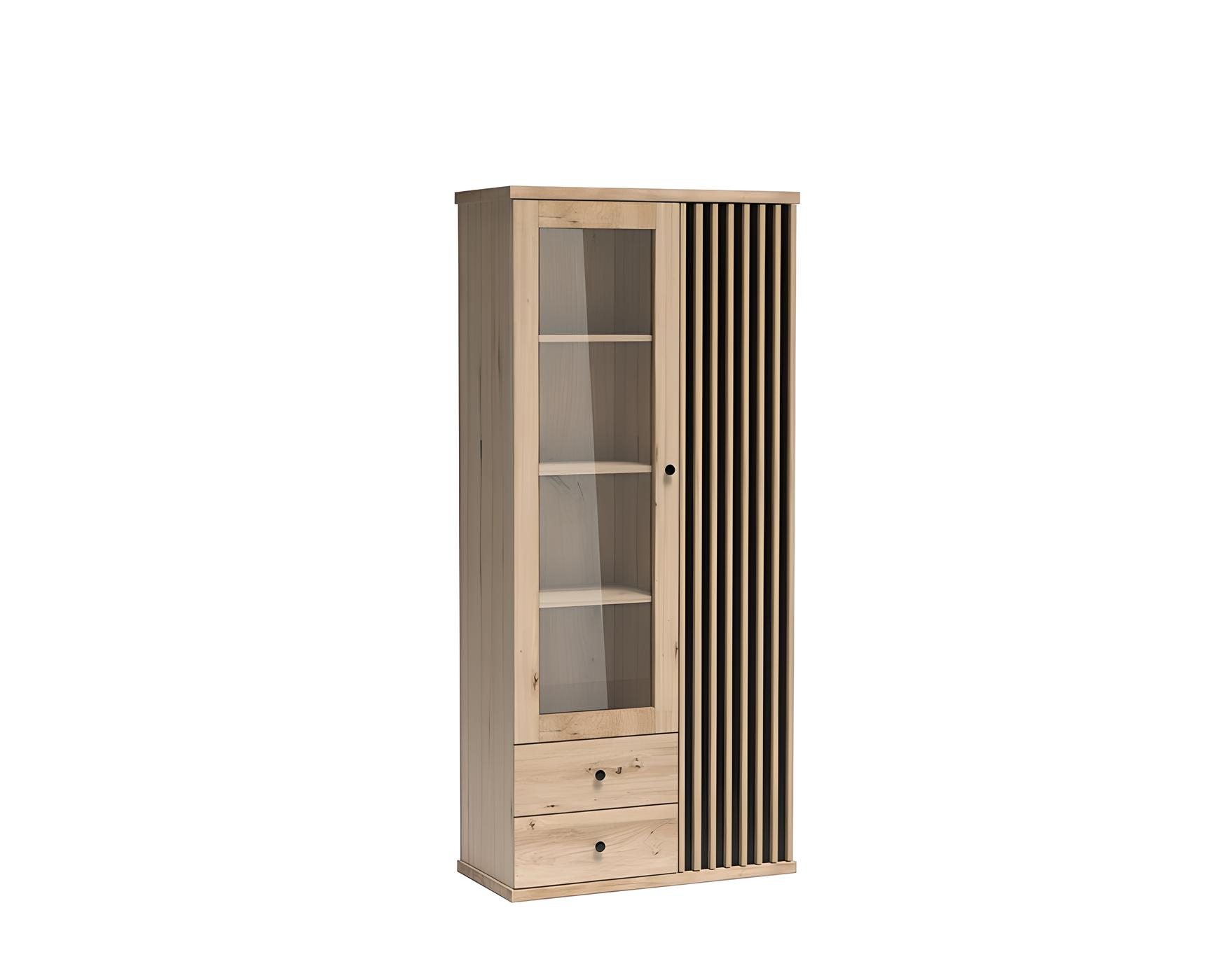 Vitrine 2 portes 2 tiroirs 10 étagères 90 cm Chêne et Noir – ZEBRA