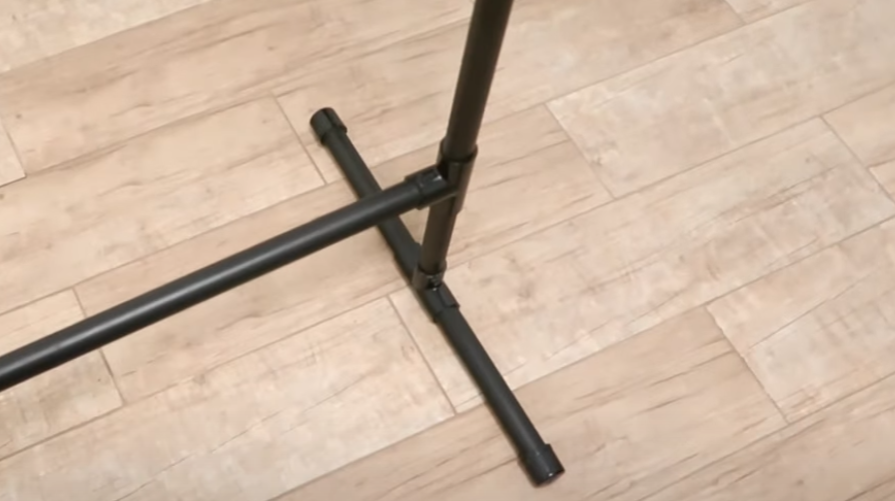 Prenez vos deux tubes de 31 pouces et insérez-les dans les tubes de 6 pouces de la base. Vous devez les enfoncer jusqu’à ce qu’ils soient bien stables et droits.